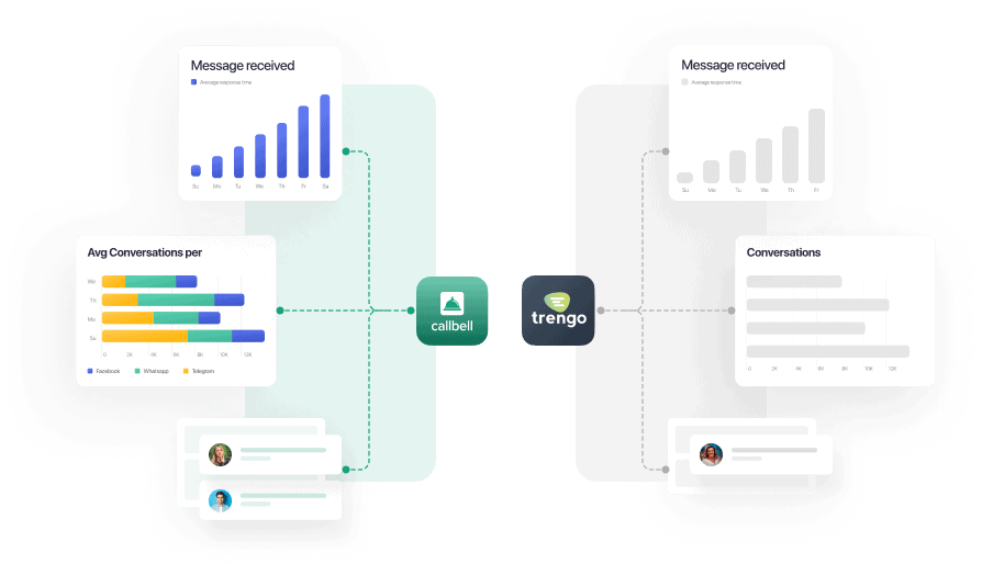 Entre ellas tenemos el precio donde Callbell es más económico. Por otra parte, la atención al cliente de Trengo no es muy buena y el enfoque de esta herramienta es hacia clientes que tienen grandes empresas a diferencia de Callbell que se dedica a pequeñas y medianas organizaciones. Asimismo, Callbell ofrece una plataforma omnicanal multiagente para gestionar todas tus conversaciones.