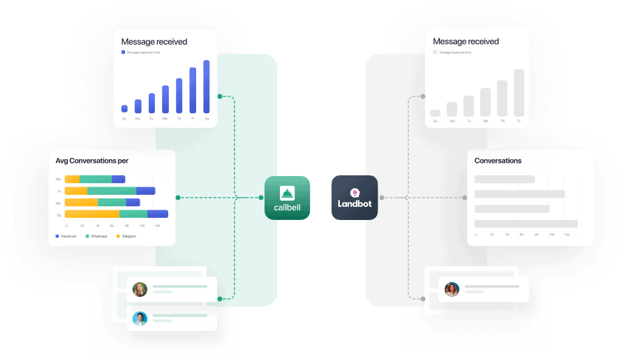 La migliore alternativa a Landbot è Callbell grazie alla sua facilità d’uso, Al supporto fornito ai propri clienti e alla varietà di canali che gestisce. Ad esempio: WhatsApp Business, Telegram, Instagram Direct e Facebook Messenger.