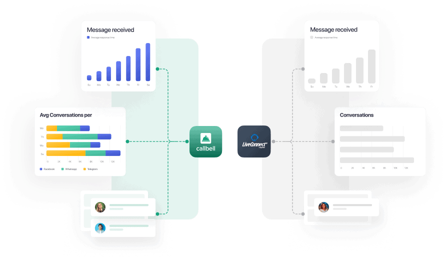 La migliore alternativa a LiveConnect è Callbell grazie alla sua facilità d’uso, Al supporto fornito ai propri clienti e alla varietà di canali che gestisce. Ad esempio: WhatsApp Business, Telegram, Instagram Direct e Facebook Messenger.