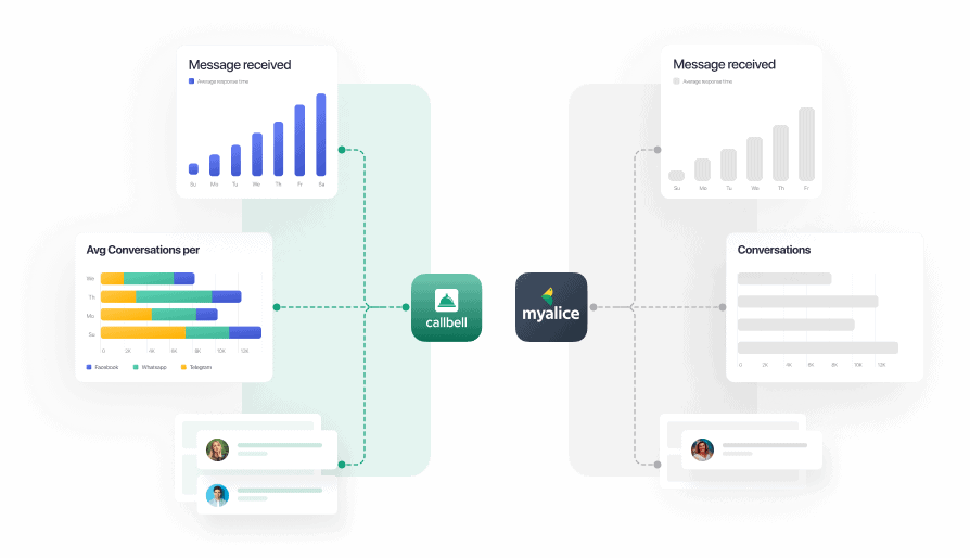 La migliore alternativa a My Alice è Callbell grazie alla sua facilità d’uso, Al supporto fornito ai propri clienti e alla varietà di canali che gestisce. Ad esempio: WhatsApp Business, Telegram, Instagram Direct e Facebook Messenger.