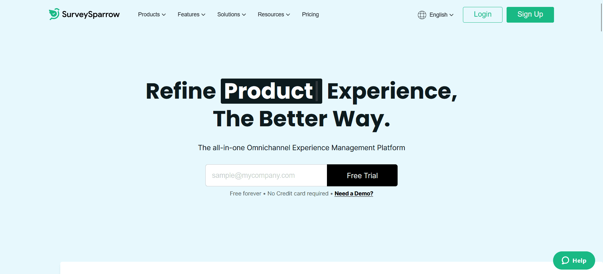 Survey Sparrow é uma plataforma de pesquisa online que permite que empresas e organizações criem e enviem pesquisas personalizadas para seus clientes, funcionários e outras partes interessadas. A plataforma oferece uma variedade de recursos para tornar as pesquisas mais envolventes, interativas e eficazes, incluindo a opção de criar pesquisas na forma de chat, personalização de cores e layouts e a capacidade de automatizar o envio de pesquisas por e-mail. e-mail, SMS, redes sociais e outros canais.